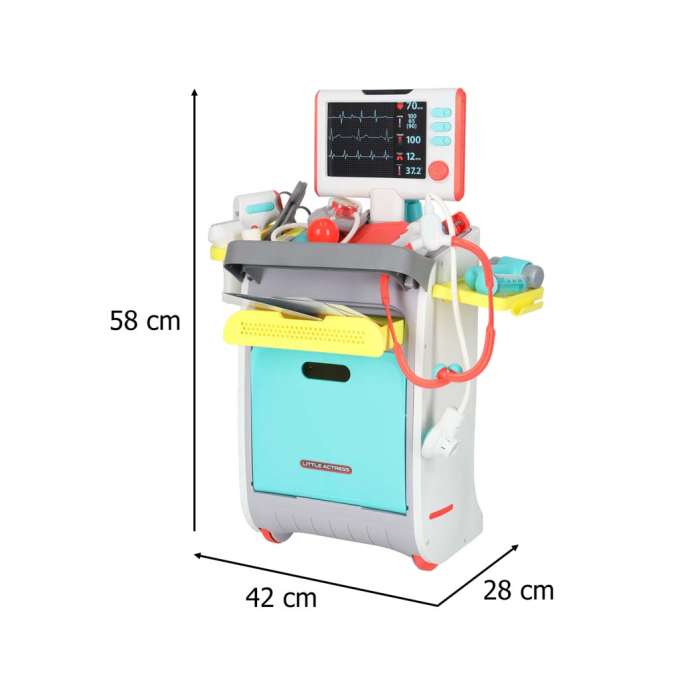 Medicinos punktas ant ratukų skirtas vaikams nuo 3 metų amžiaus. Jauniausiems bus parodyta, kaip atrodo vizitai pas gydytoją ir pagrindiniai medicininiai tyrimai. Vaikas turi įvairių priedų, kurie žaidimui suteikia tikroviškumo.