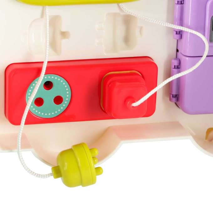Viskas šiame autobuse svarbu. Kiekvienas mygtukas ir rankenėlė palaiko jutimo pratimus, o sumaniai išdėstyti moduliai moko mažylį judrumo, miklumo ir drąsos eksperimentuoti. Čia vaikas atranda, kaip veikia pasaulis, mokydamasis kasdienės veiklos natūraliausia forma – per žaidimą. Unikaliausias elementas yra mokymasis suvarstyti, naudojant ikonišką batą, skirtą išmokti raištyti. Būtent jis supažindina vaiką su tikslių rankų judesių pasauliu, taip reikalingu vėliau piešiant, rašant ir rengiantis savarankiškai.