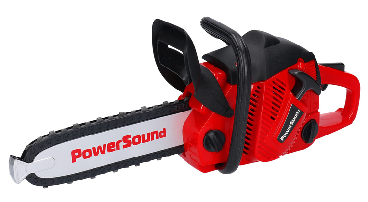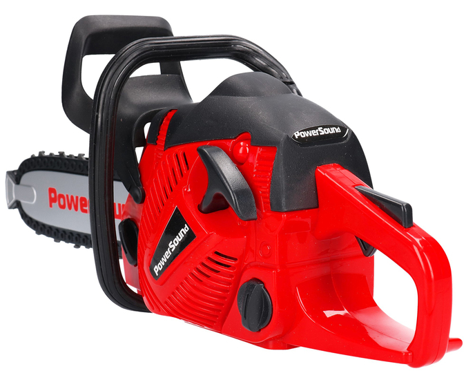 Paspaudus antrą svirtį – įpylus dujų – grandinė juda, imituodama tikrą pjūklą.