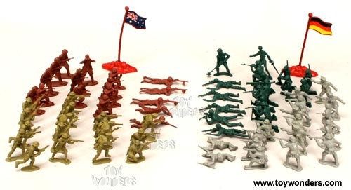 Rinkinį sudaro 4 spalvų kareivėliai įvairių padėčių,dvi skirtingos vėliavos su stovais.
