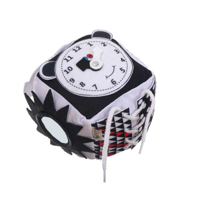 Minkšto kubo formos pakabukas su kontrastingais raštais yra puikus pasiūlymas vaikams, kurie dar tik mokosi pažinti pasaulį.