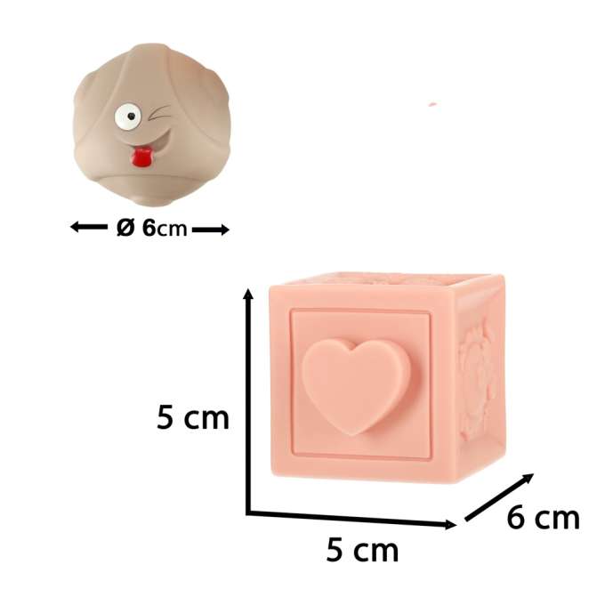 Visi elementai pagaminti iš minkšto silikono, todėl žaislas yra visiškai saugus patiems mažiausiems vaikams ir netgi gali būti naudojamas kaip kramtukas.